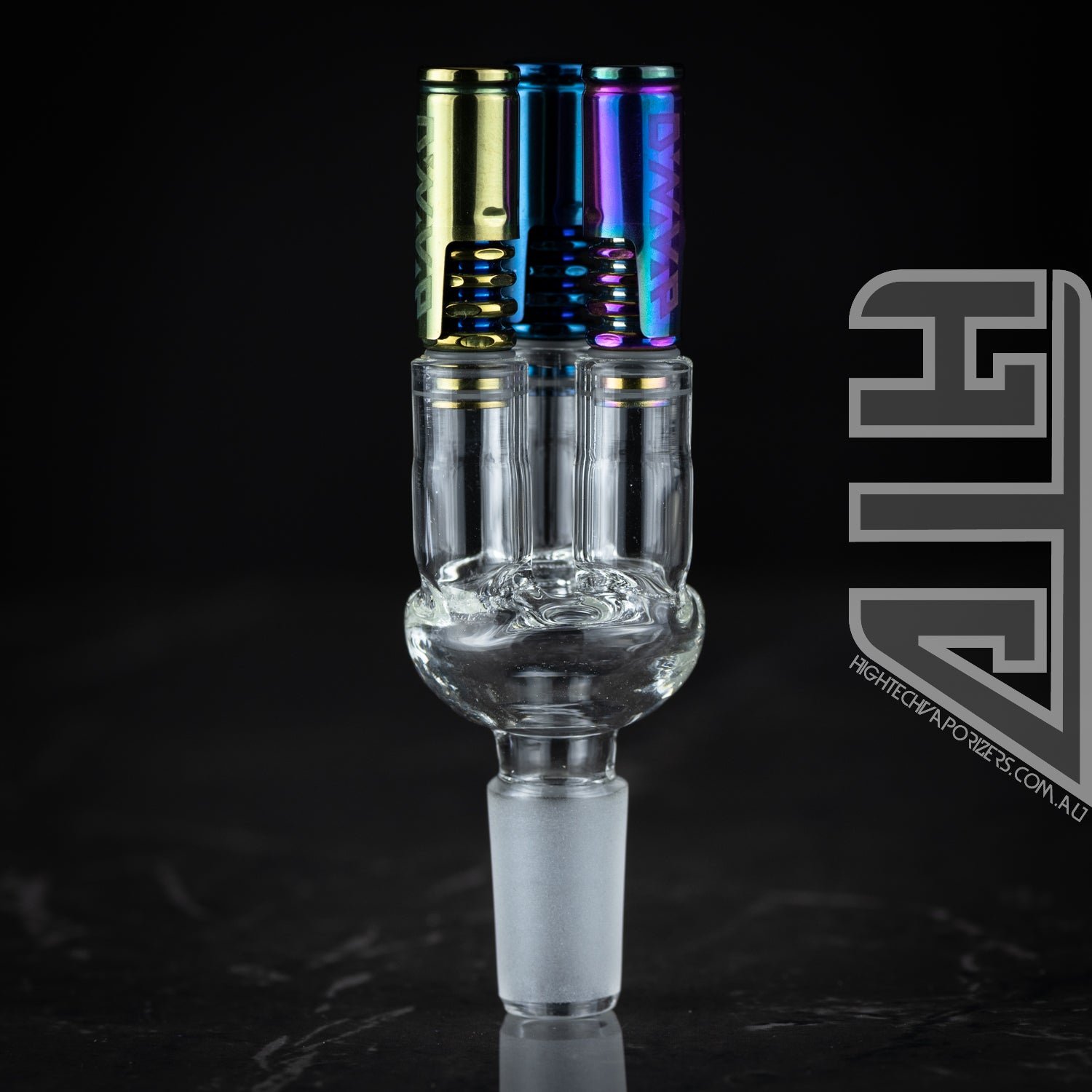The Triple Treat allows the use of 3 dynavap tips at once. And on the connection side you have a 14mm male glass joint which will connect to your favourite 14mm waterpipe.