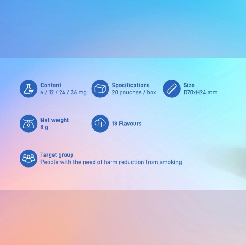 | NICOTINE MG/POUCH | 6/12/24/36 mg |