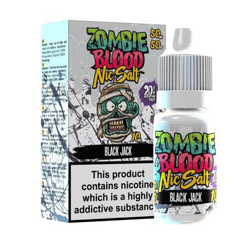 Black Jack 10ml Nicsalt Eliquid by Zombie Blood A classic and extremely moreish Aniseed flavour that taste just like those Black Jack sweets you Love. On inhale Aniseed flavour and exhale Sweet flavour.