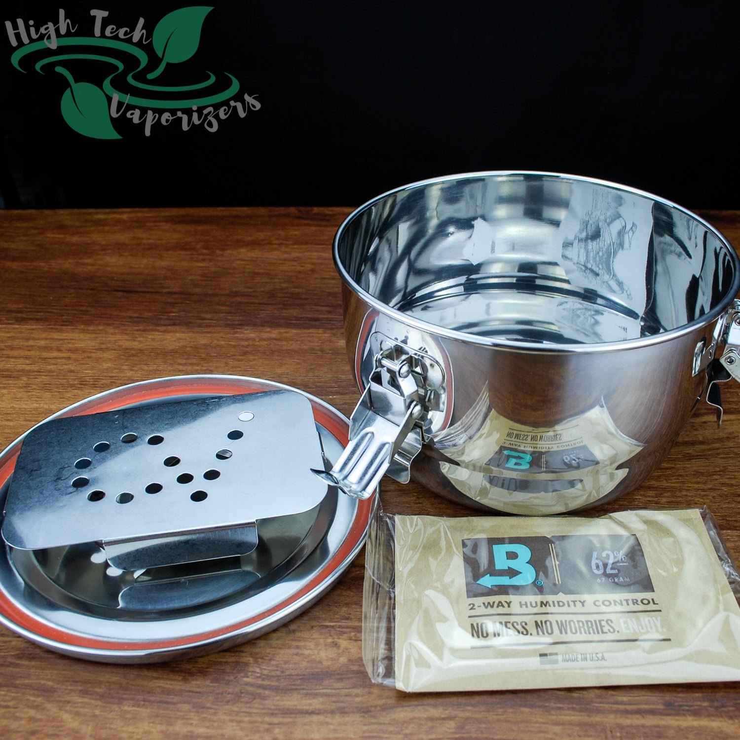 CVault`s are constructed out of high Quality food grade stainless steel and the lid is lined with a silicone seal to ensure your CVault is airtight. There is also a slot in the lid where you can slip you Humidity pack in.