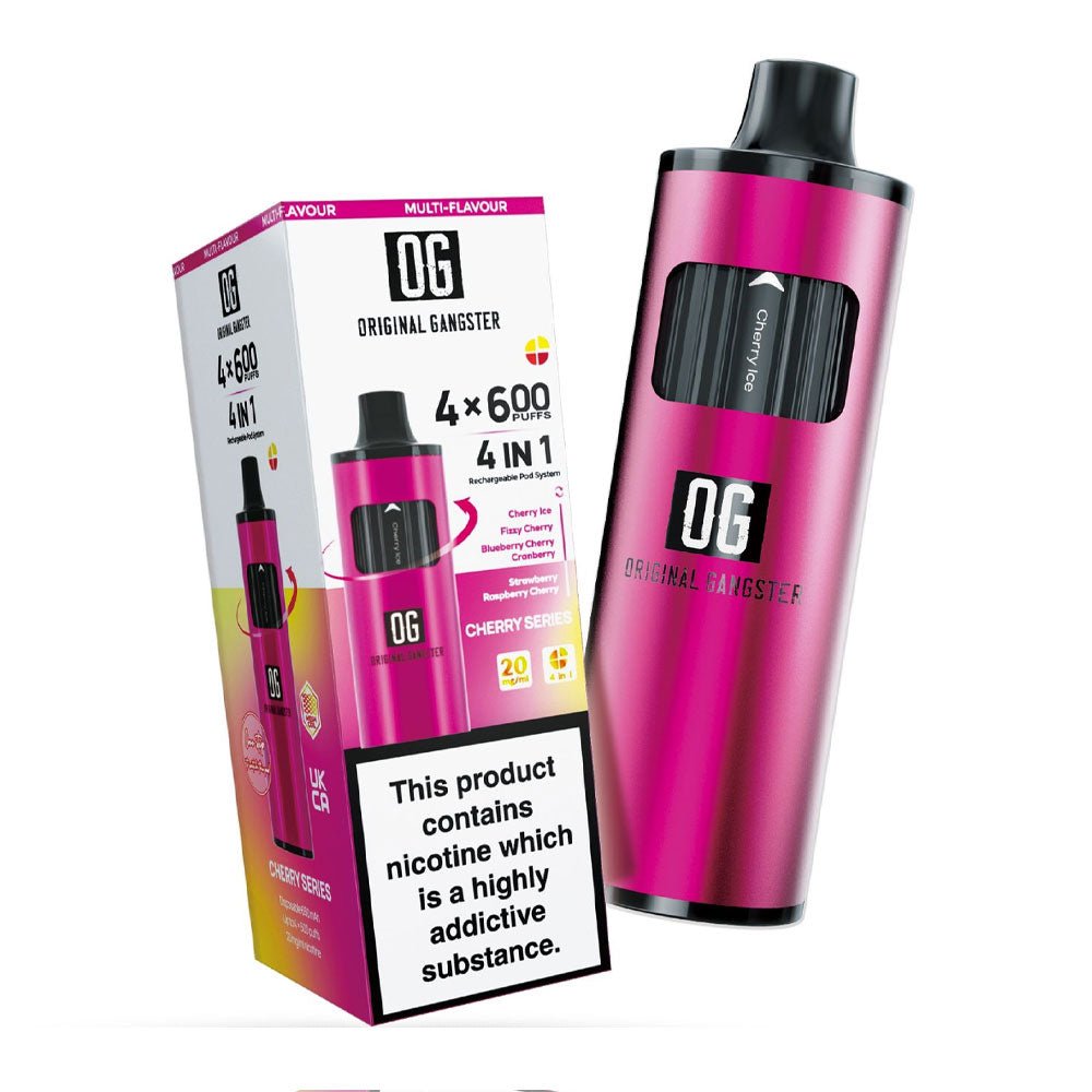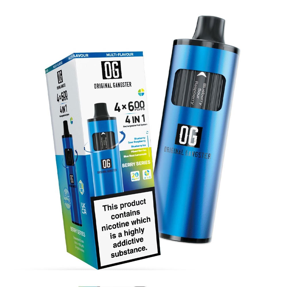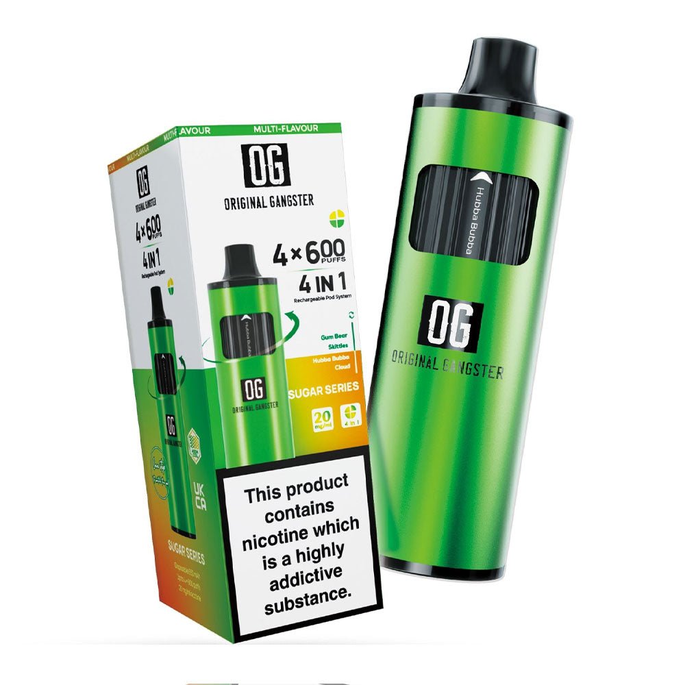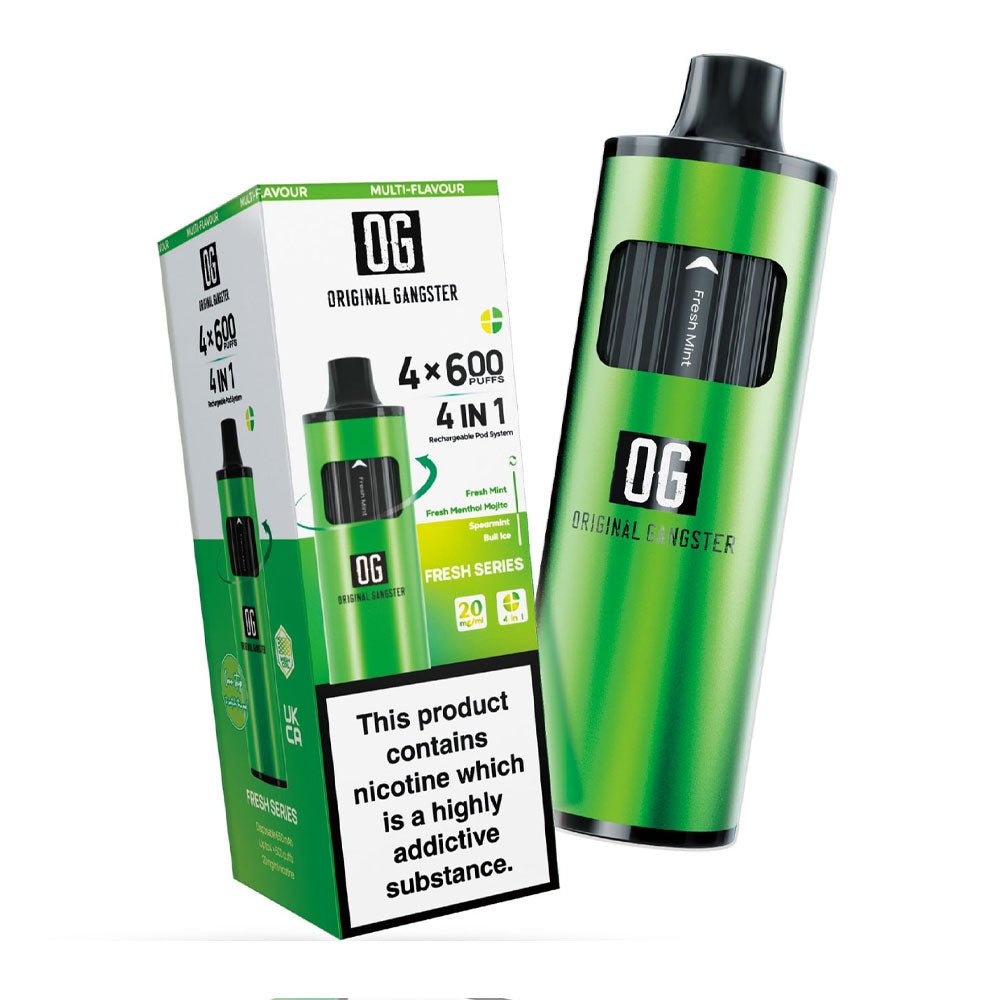 Original Gangster OG 2400 4-in-1 Disposable Vape offers 2400 puffs with four different flavours. The device is rechargeable and offers uninterrupted vaping.