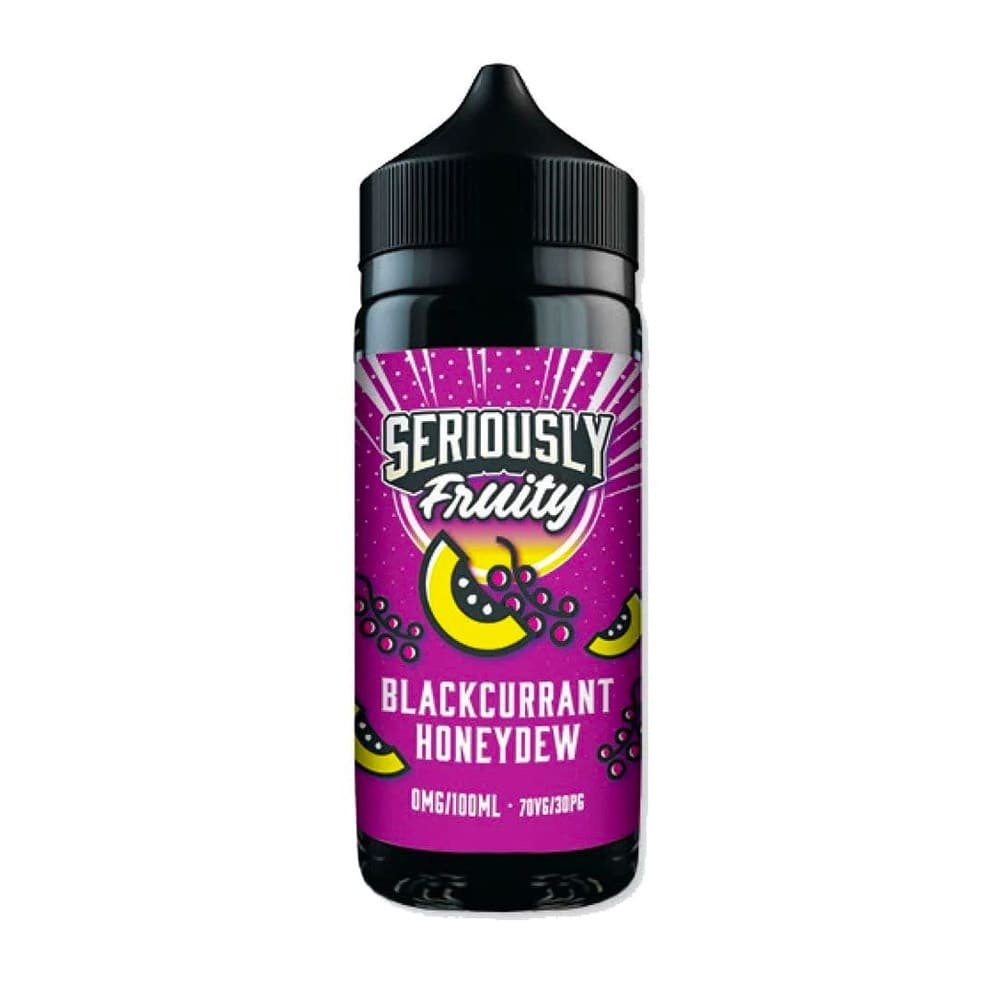 Seriously Fruity Blackcurrant Honeydew 100ml Shortfill E Liquid By Doozy Vape by Seriously Fruity features tangy blackcurrants bursting with juice over soft and freshly cut honeydew melon for a beautiful fruity mix.
