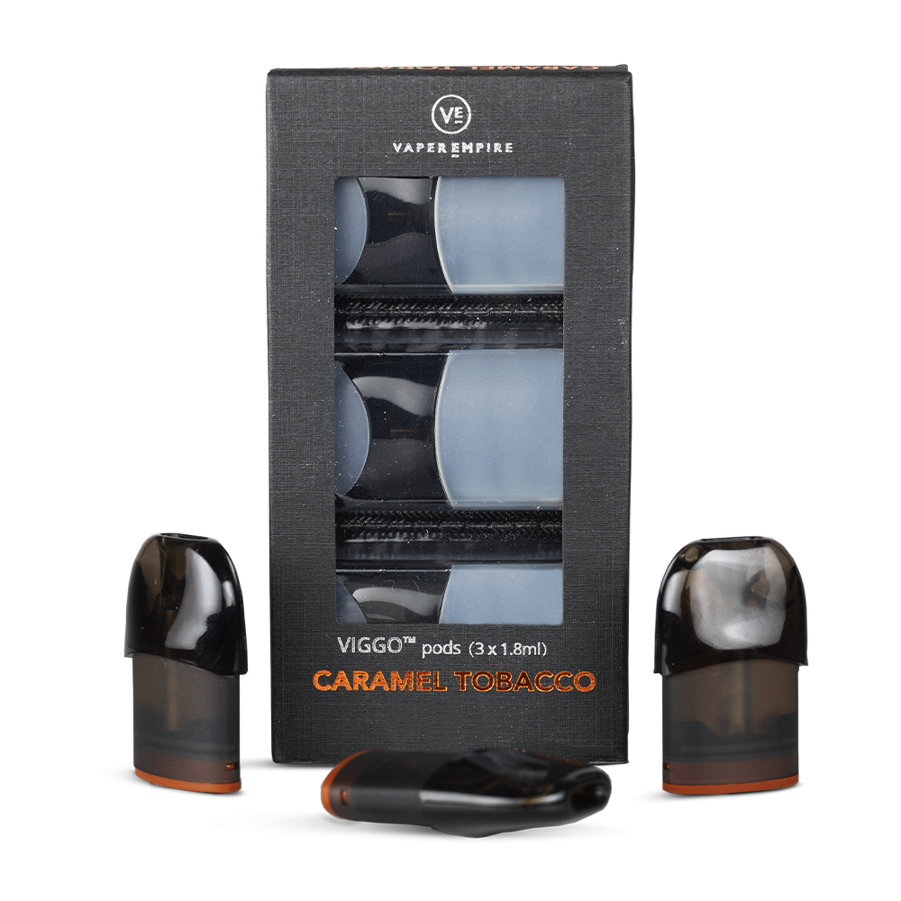 Caramel Tobacco VIGGOpods are as tasty as they sound. Both tobacco and non-tobacco lovers alike will enjoy this bold new flavour from the e-liquid experts at Vaper Empire. Combining the smooth, yet bold flavour of tobacco with the mouth-watering sweetness of caramel to create a delectable new flavour that’s perfect for all-day vaping.